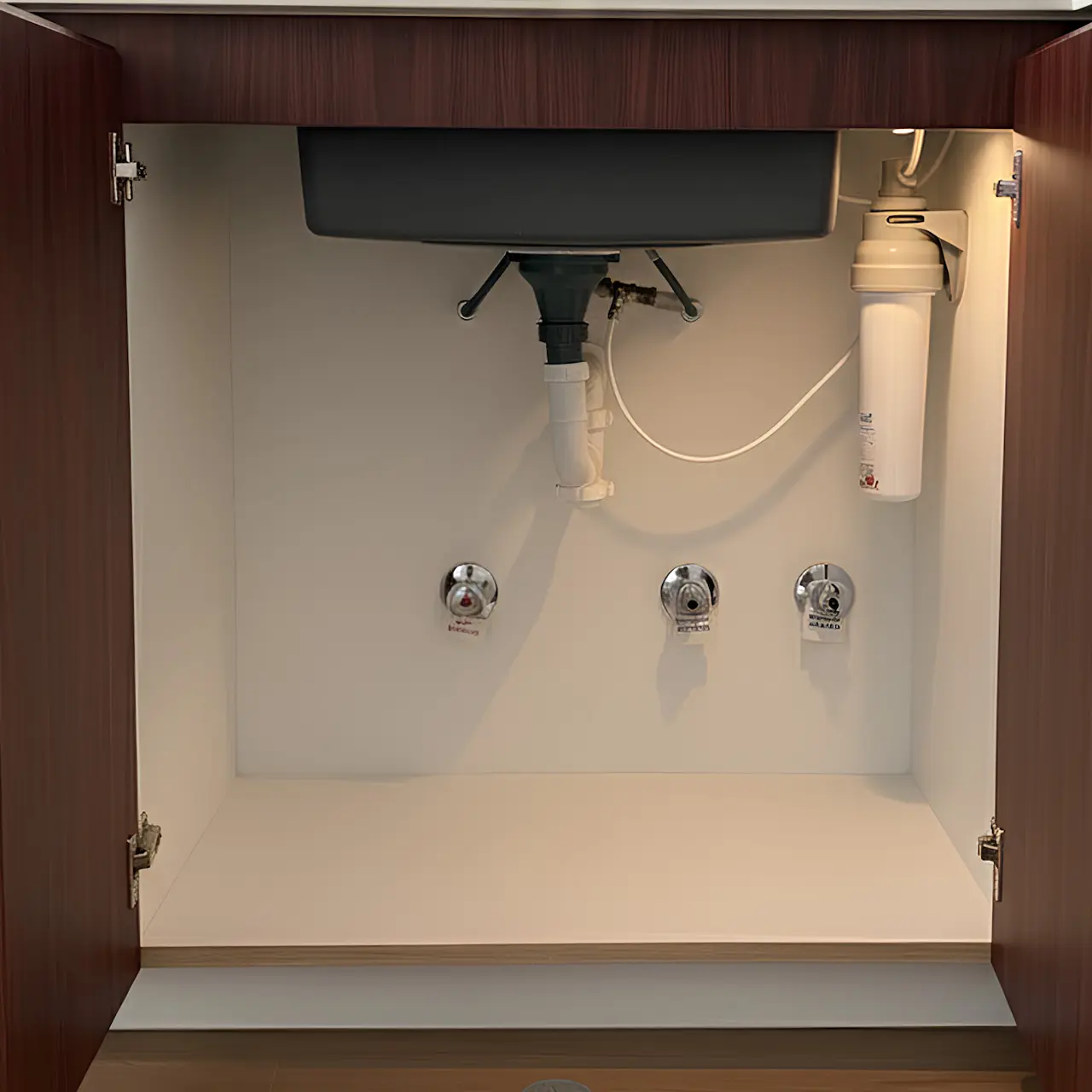 Instalación: Abajo del lavadero los tubos de abasto deben estar a la vista para conectar el equipo purificador Ecofast al tubo de agua fria y no deben haber cajones. Si tienes dudas, nos envias un video de arriba y abajo de tu lavadero para ayudarte.